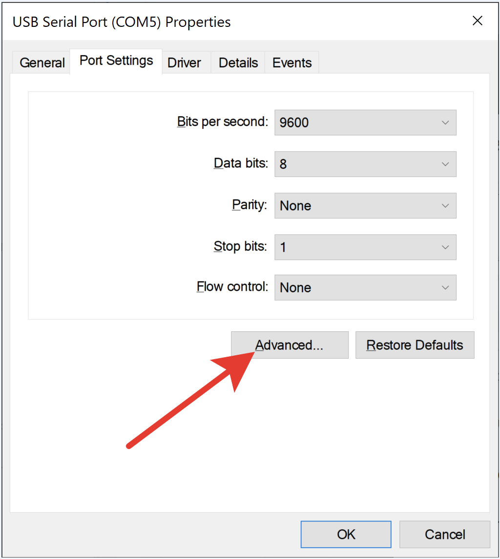 2.4 Откройте вкладку Параметры порта и нажмите кнопку Дополнительно...