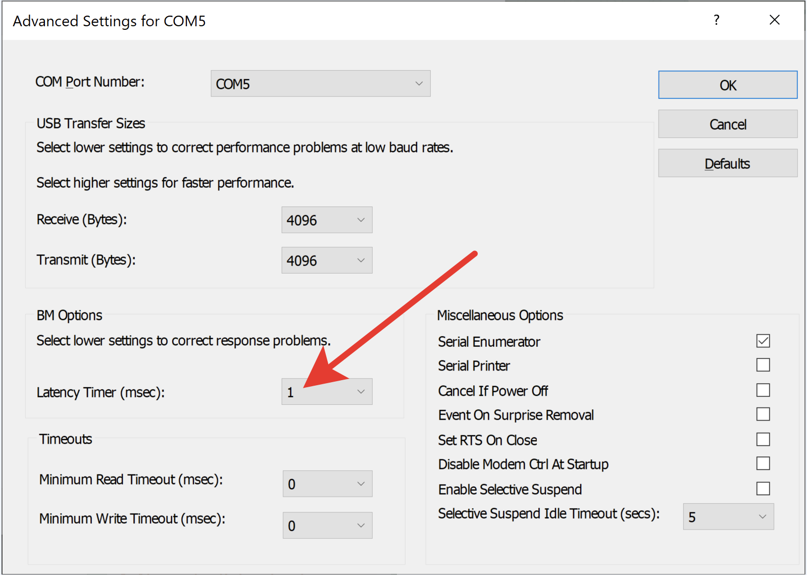 2 Изменение тайм-аута в драйвере FTDI